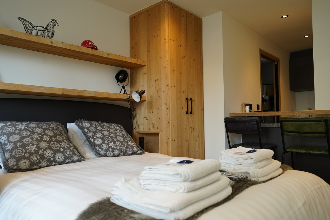 You can also book the studio together as an extension of apartment MiMa. So in total 6 people. It is located on the same floor diagonally opposite the self-catered st Martin de Belleville Apartment.